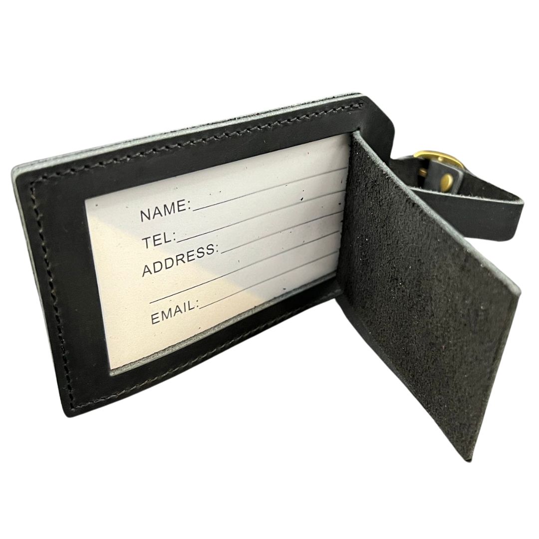 This set also comes with a matching black leather luggage tag with gold inlay.
